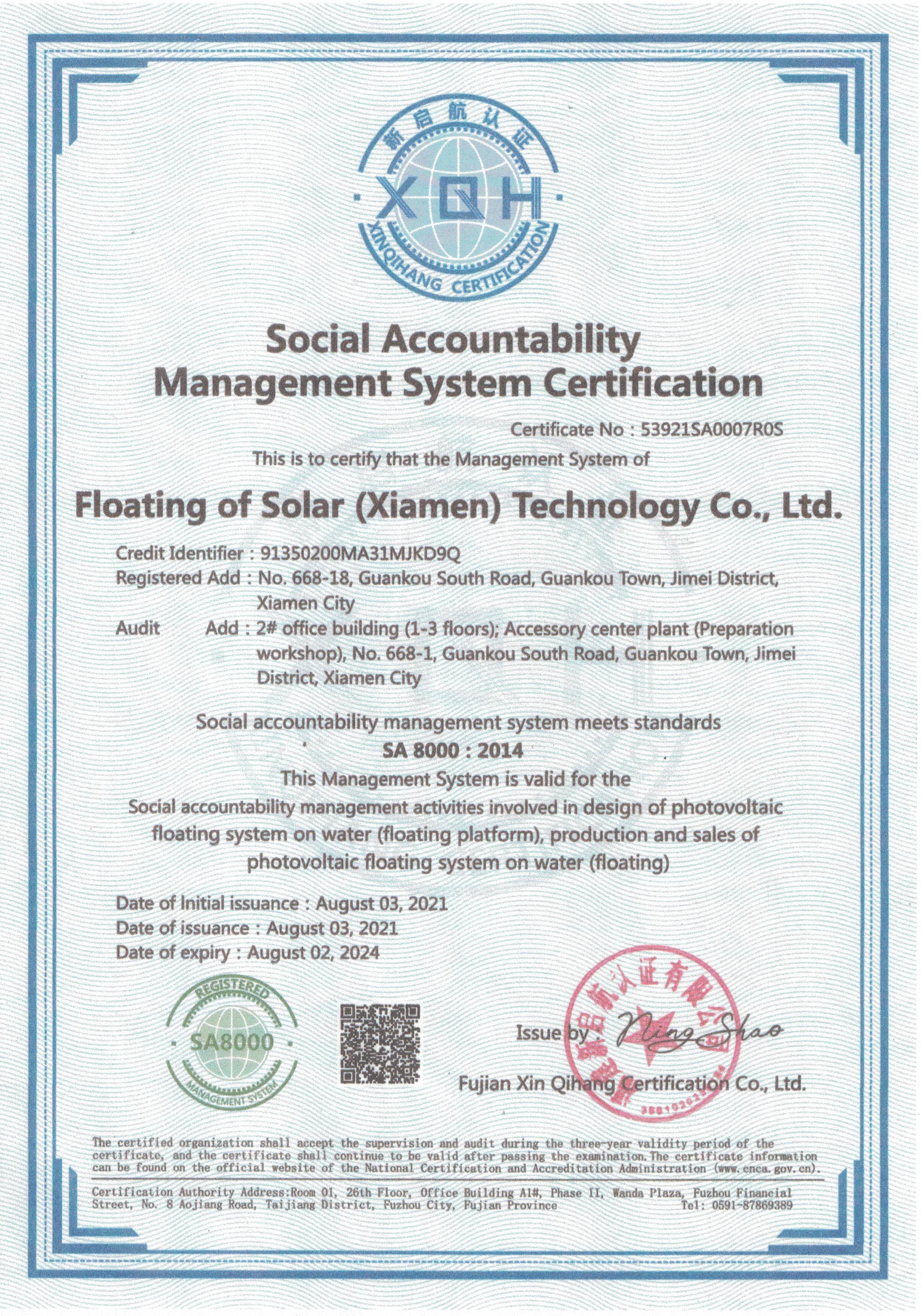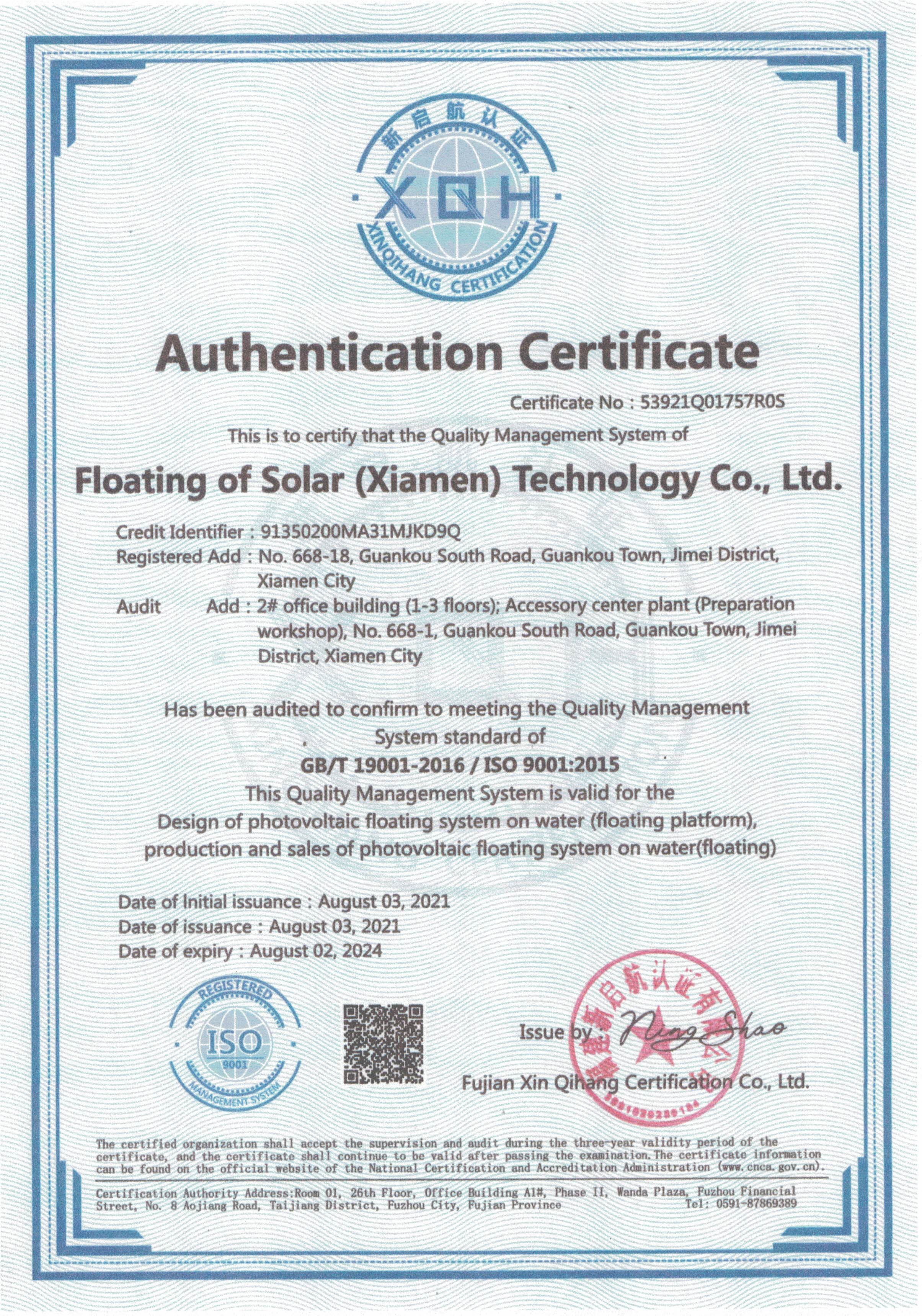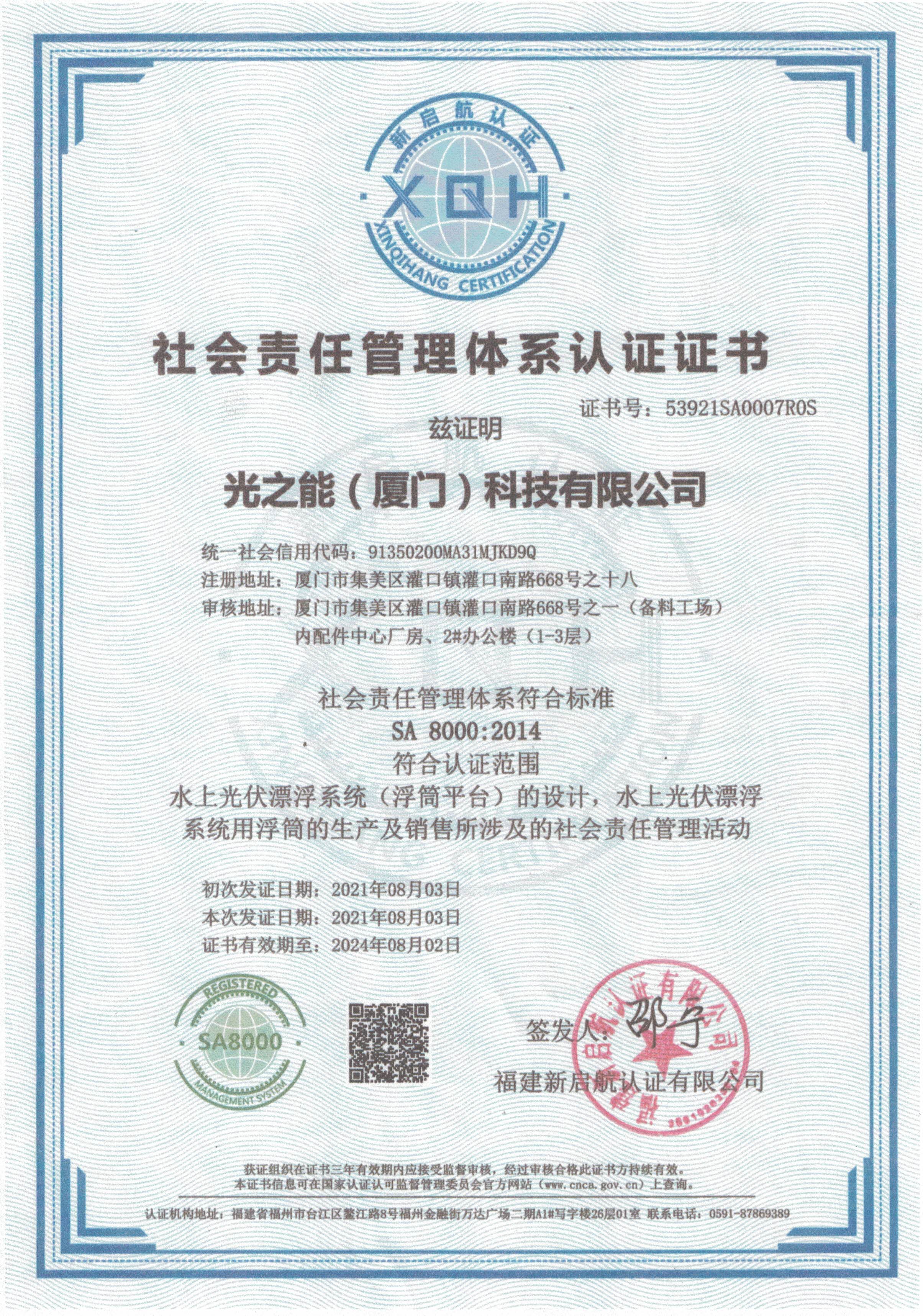 光之能(厦门)科技有限公司成立于2013年,总部位于中国厦门,是一家最早进入漂浮光伏电站领域的企业之一,目前已发展成全球技术领先的光伏漂浮系统解决方案提供商。公司是一家集研发、生产、营销、运维及服务为一体的新能源领域国家级高新科技企业。公司秉承“让更多人用上便宜的绿色能源”的品牌理念,以人为本,科技创新,为全球客户提供值得信赖的产品及高效、专业的服务。